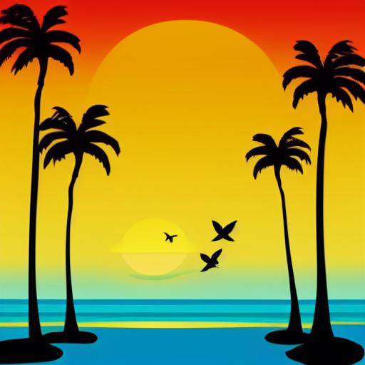 Beautiful sunset with some palm trees and birds