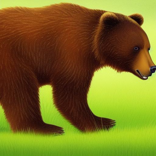 First, the prompt begins with a description of the subject matter: a brown bear on a green field. This gives the AI model a specific image to create. The color and setting are both important in creating a vivid and realistic image. Brown bear suggests that the bear should have a brown fur, while green field suggests a natural environment that may involve grass, trees, or other natural features.