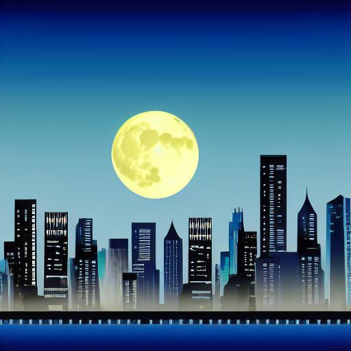 City at night with a moon in the sky