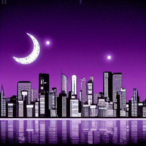 City at night with moon in the sky