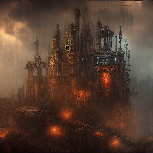 Each individual part of the prompt contributes to the overall image being generated. By considering each element carefully, artists and designers can create a highly specific and detailed image that meets the needs of their project or campaign. In this case, the prompt suggests the creation of a dark and dramatic steampunk painting featuring a city on top of a mountain, with a strong emphasis on mechanical gears and metallic components. The use of a thunderstorm and rain, along with the steampunk castle and villages, suggests that the image should be highly detailed and imaginative. The prompt also emphasizes the importance of originality and creativity, and suggests that the final image should be of a high quality and originality.