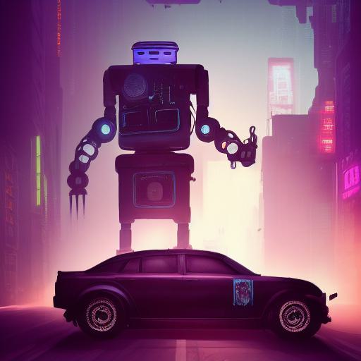 These elements work together to influence the generated image, creating a specific visual narrative that captures the essence of the Dieselpunk and cyberpunk genres. The car and robot add dynamic elements to the scene, while the city street provides a context for their actions. The artist and art style ensure that the image is visually striking and full of intricate details, while the mood and theme give it a deeper, more complex meaning. Overall, this prompt provides a clear and concise set of instructions for generating a specific type of image that evokes a unique and immersive world.