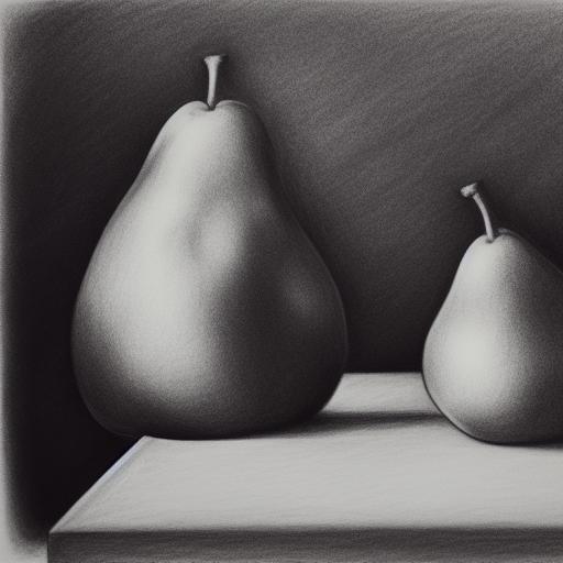 Drawing of a pear and an apple on a table