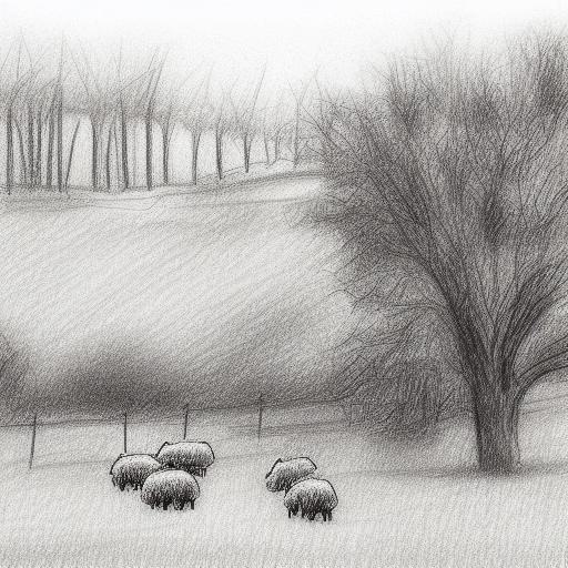 Drawing of sheep and trees in rural