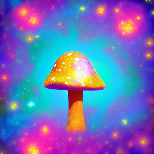 2. “A starry mushroom on a cloud with stars in the background” – This is a specific subject or theme, which will influence the content and composition of the image being generated. The starry mushroom and cloud will likely create a dreamlike and whimsical atmosphere, while the stars in the background will add a sense of depth and scale.