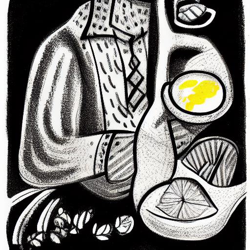 3. A drawing of a man holding a bowl of lemons: This is a specific subject matter that the AI model will try to incorporate into the image. The AI model may also try to use different colors and textures to create a more realistic representation of the lemons and the man holding them.
