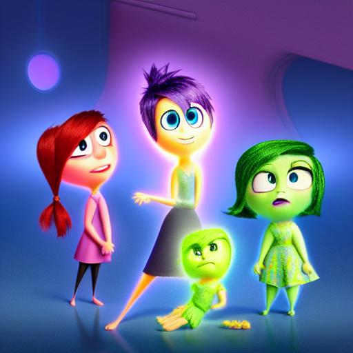 Firstly, the prompt mentions “Inside Out characters,” which is a reference to the popular Pixar animated film “Inside Out.” The characters in the movie are known for their distinct personalities and emotions, so the mention of these characters in the prompt is likely to influence the emotions and expressions of the characters in the AI-generated image.