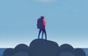 - “Traveler wearing a large backpack”: This is the main subject of the image and sets the stage for a sense of adventure and exploration.