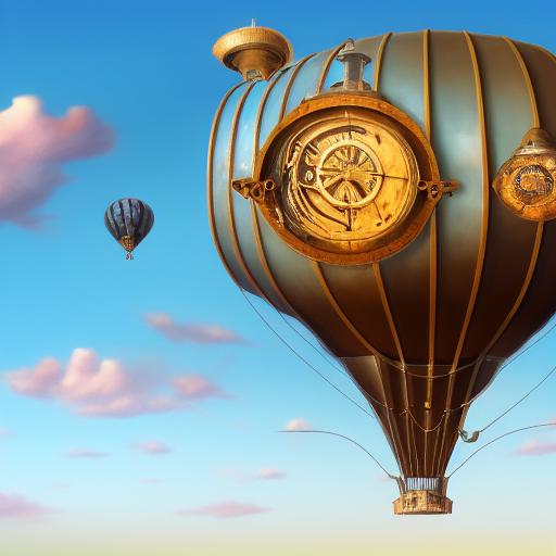 Joyful detail steampunk art of a mechanical airship flying in the blue sky