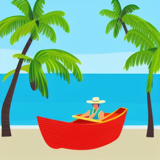 Man is sitting in a boat on the beach
