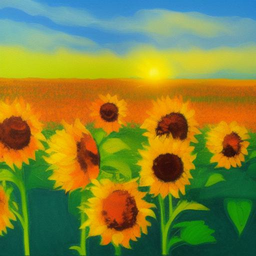 Oil painting of sunflowers in the field