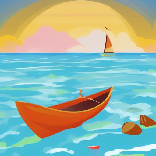 One man is sitting in a boat on the beach