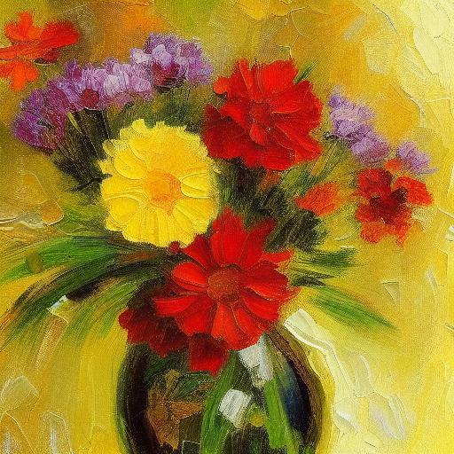 Painting of several flowers in a vase