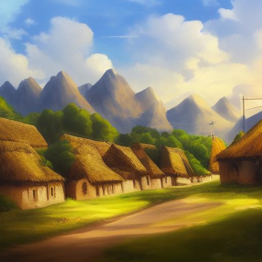 Painting of the village in the mountains