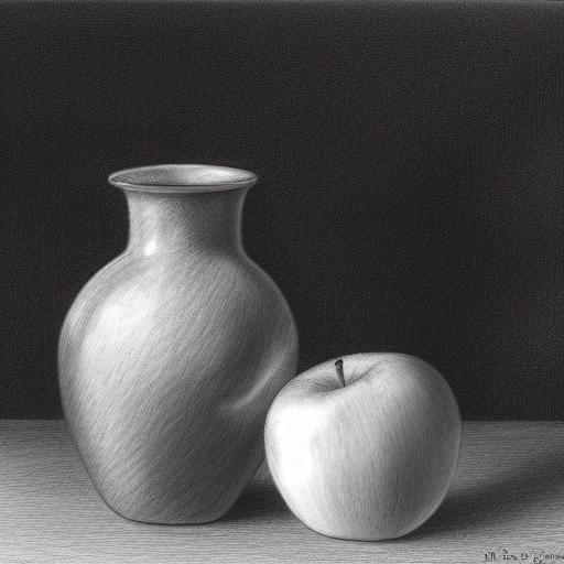 Pencil drawing of a vase and apples on a table