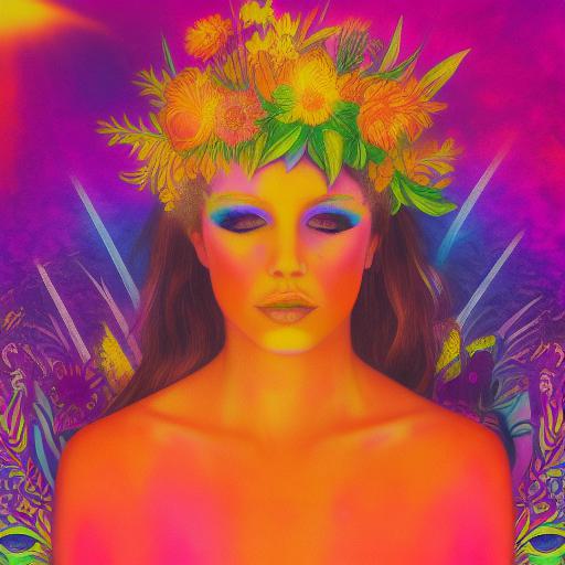 • The woman is the main subject of the image, and the flower crown adds a mystical and natural element to the overall composition.