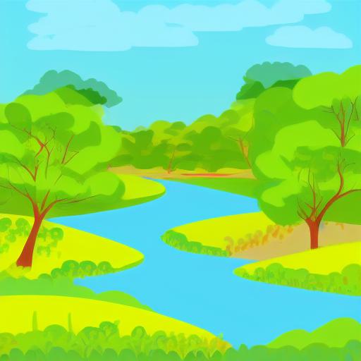 River running through a green field
