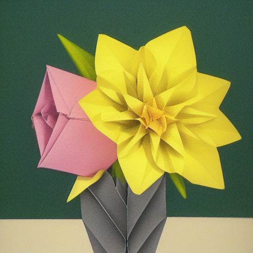The AI image prompt “several paper flowers in a pot, a portrait by Maki Haku, flickr, sōsaku hanga, paper origami flowers, daffodils, lilies and daffodils” contains several elements that influence the image generated.