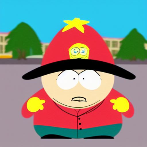 The next element in the prompt is “a cartoon character from the TV show.” This narrows down the scope of the image to a single character from South Park, rather than a scene or group of characters. The prompt specifies that the character should be Eric Cartman, one of the main characters of the show known for his selfishness and intolerance.