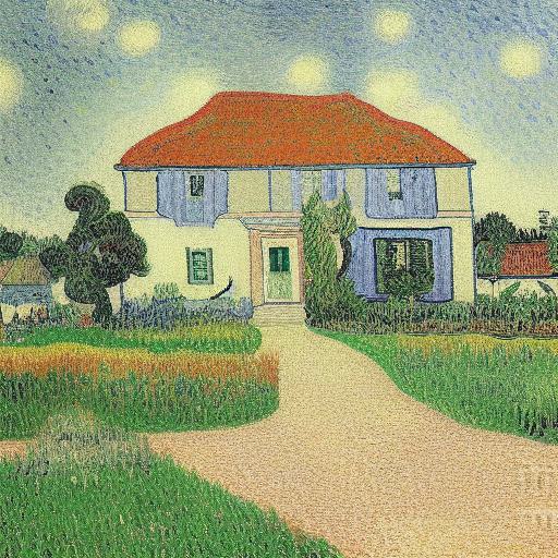 The art painting of the house with garden