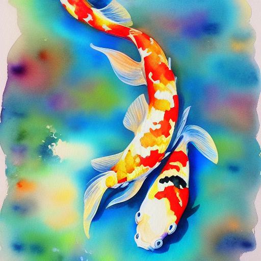 The colorful watercolor painting of koi fish