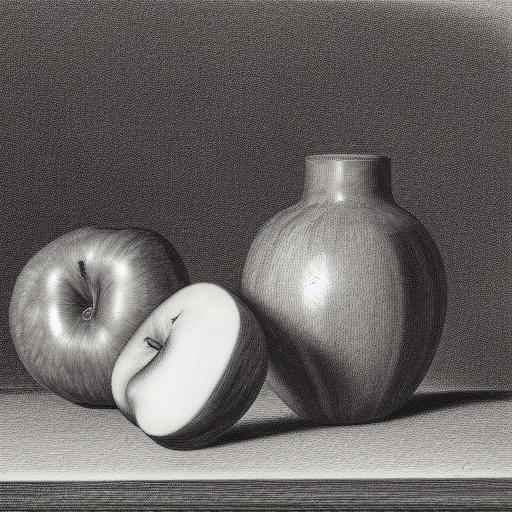 The drawing of a vase and apples on a table