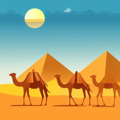 The group of camels in a desert