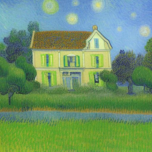 The painting of the house in the garden