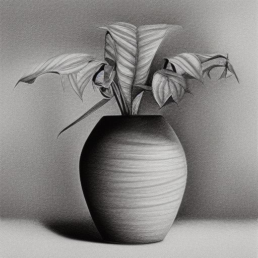 The pencil art drawing of a plant in a vase