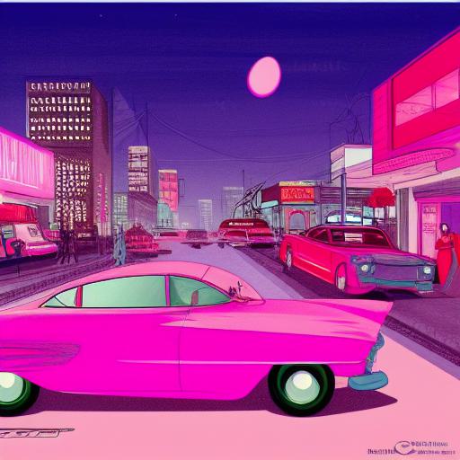 In the example prompt given, the image described is a pink car driving down a street at night. The prompt also specifies the style of the image, which is retrofuturism with a 1950s illustration style, as well as the inspiration behind it – concept art by Craig Thompson and a Behance contest winner.