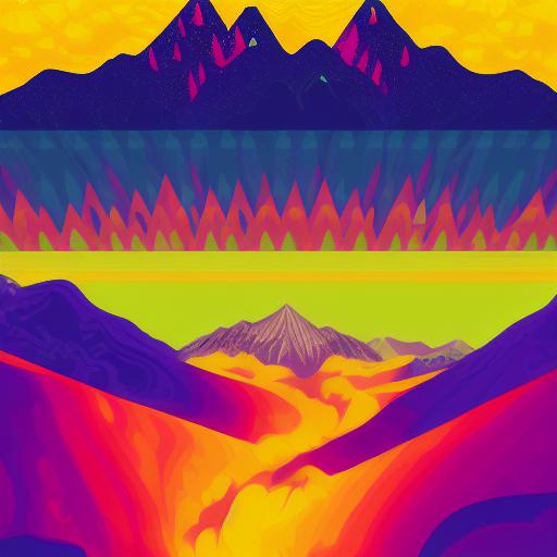 The psychedelic art poster with mountains in the background