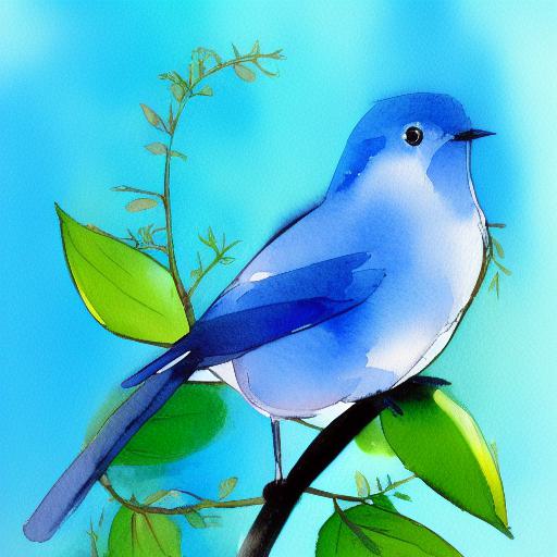 The watercolor painting of the blue bird sitting on a branch inspired by Paul Bird
