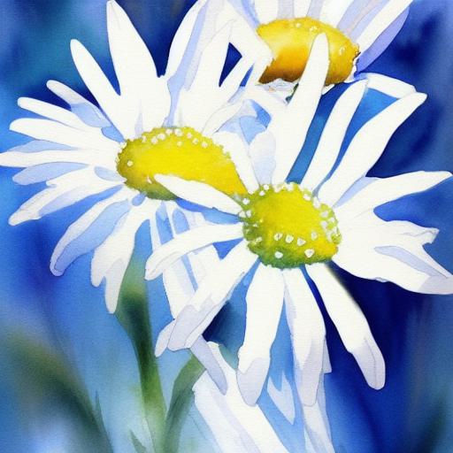 The watercolor painting of white daisies