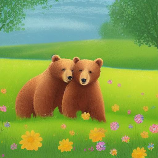 Fourthly, the prompt mentions that the image is set in a meadow, which provides additional information about the surroundings of the bears and the types of flora and fauna that may be present in the image.