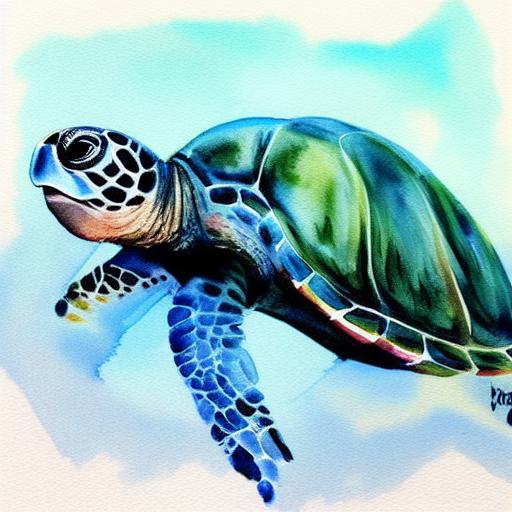 Watercolor color painting of a sea turtle