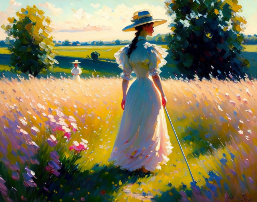 Prompt Inspired by Promptify: a painting of a woman in a field, an impressionist painting by Robert Reid, tumblr, american impressionism, impressionist art, standing with a parasol, impressionist painting, loose brushstrokes, outdoor scenes