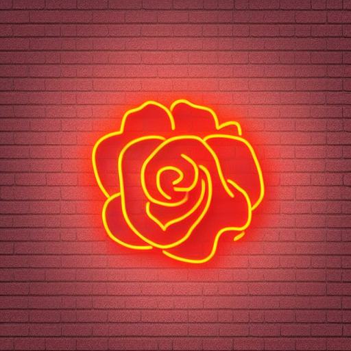 A flower neon sign on a brick wall