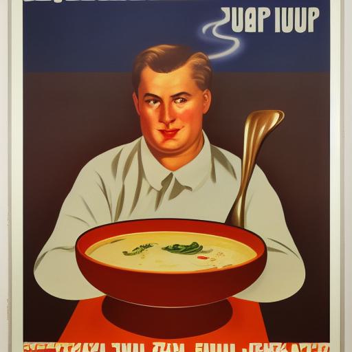 The AI image prompt provided is a detailed description of a poster featuring a man holding a spoon in front of a bowl of soup. The poster is attributed to artist HAP Grieshaber and is said to have a socialist realist style, with influences from 1940s propaganda posters and communist propaganda. The various elements included in the prompt work together to create a specific image in the mind of the AI and guide the image generation process.