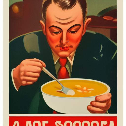 About A man in front of a bowl of soup