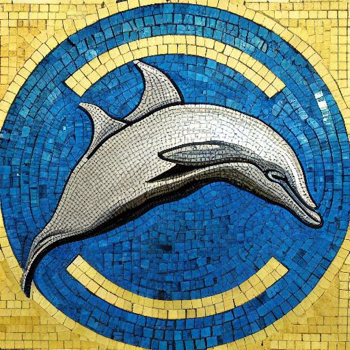 A mosaic of a dolphin swimming inspired by Charles Ginner