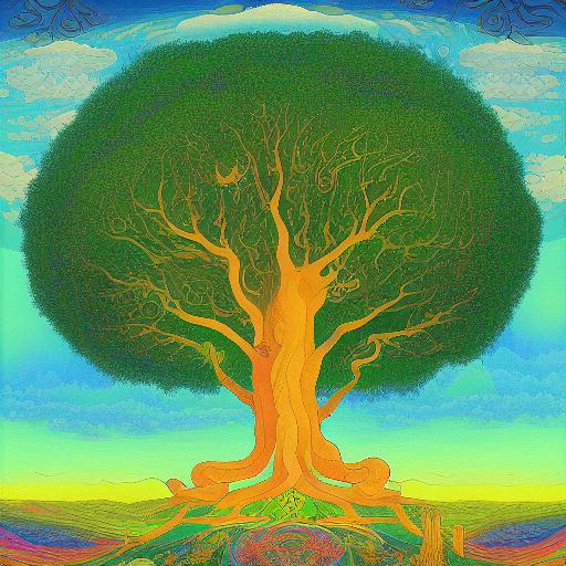 The prompt is composed of several different elements, each of which provides specific guidance to the AI on what kind of image to generate. First, the prompt describes the basic scene for the image, specifying that it should be a painting of a big green tree with a sky in the background. This sets the foundation for the image, providing a starting point for the AI to work from.