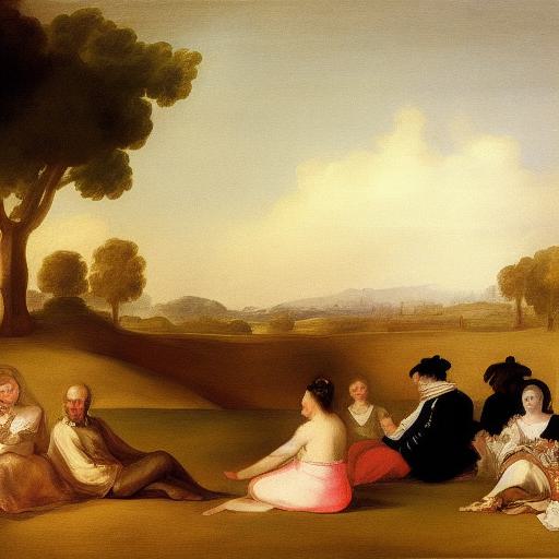 A painting of a group of people sitting on the grass by Francisco de Holanda