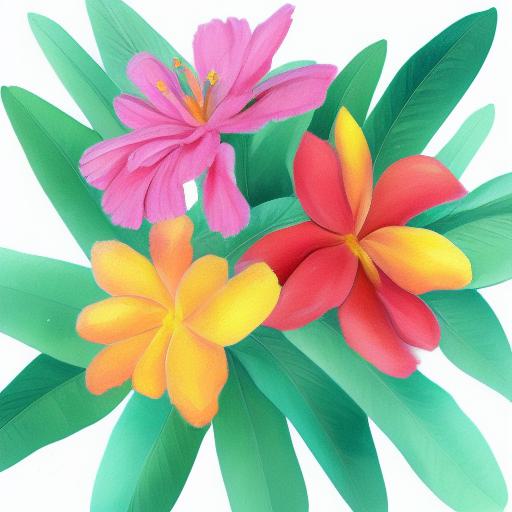 A painting of five flowers on a white background