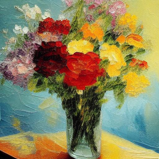 A painting of flowers in a vase