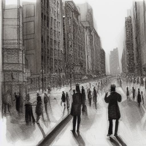 A painting of people walking down a city street