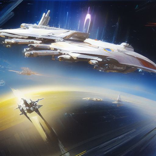 A painting of with space ships riding in the space in the background