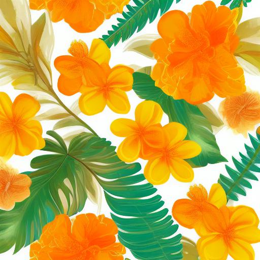 A painting of yellow and orange floral on a white background