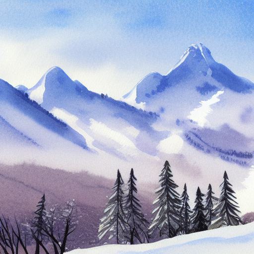A watercolor painting of a snowy mountain scene inspired by Charles E. Burchfield