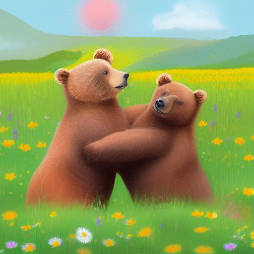 Drawing of two bears in flowers field