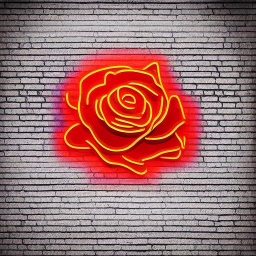 Flower neon sign on the brick wall